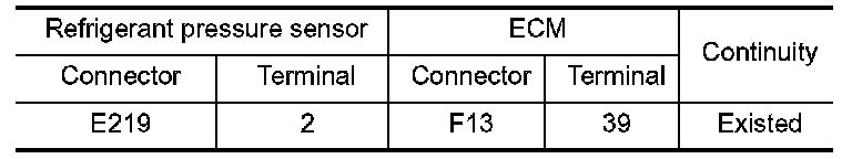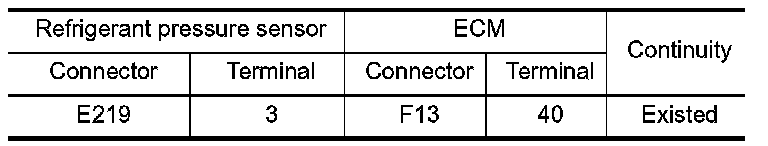1.Check the continuity between ECM harness connector and refrigerant pressure sensor harness connector.