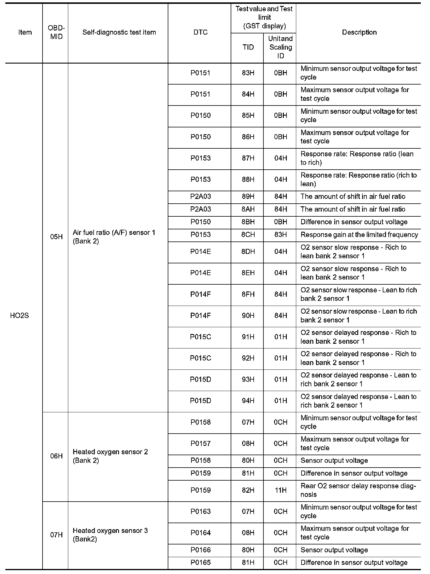 The following is the information specified in Service $06 of SAE J1979/ISO 15031-5.