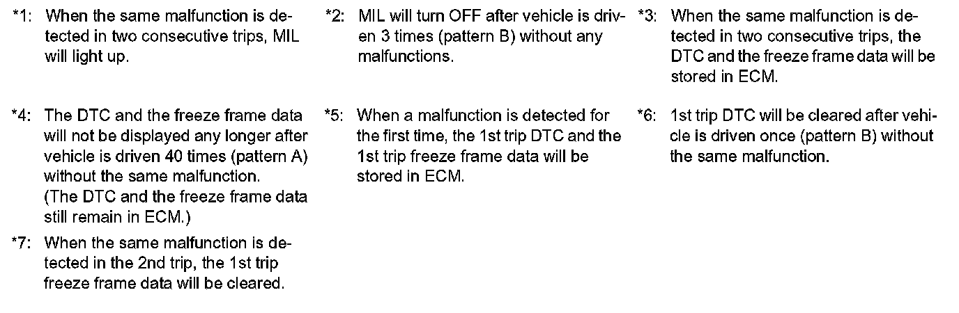 - *2: Clear timing is when the same malfunction is detected in the 2nd trip.