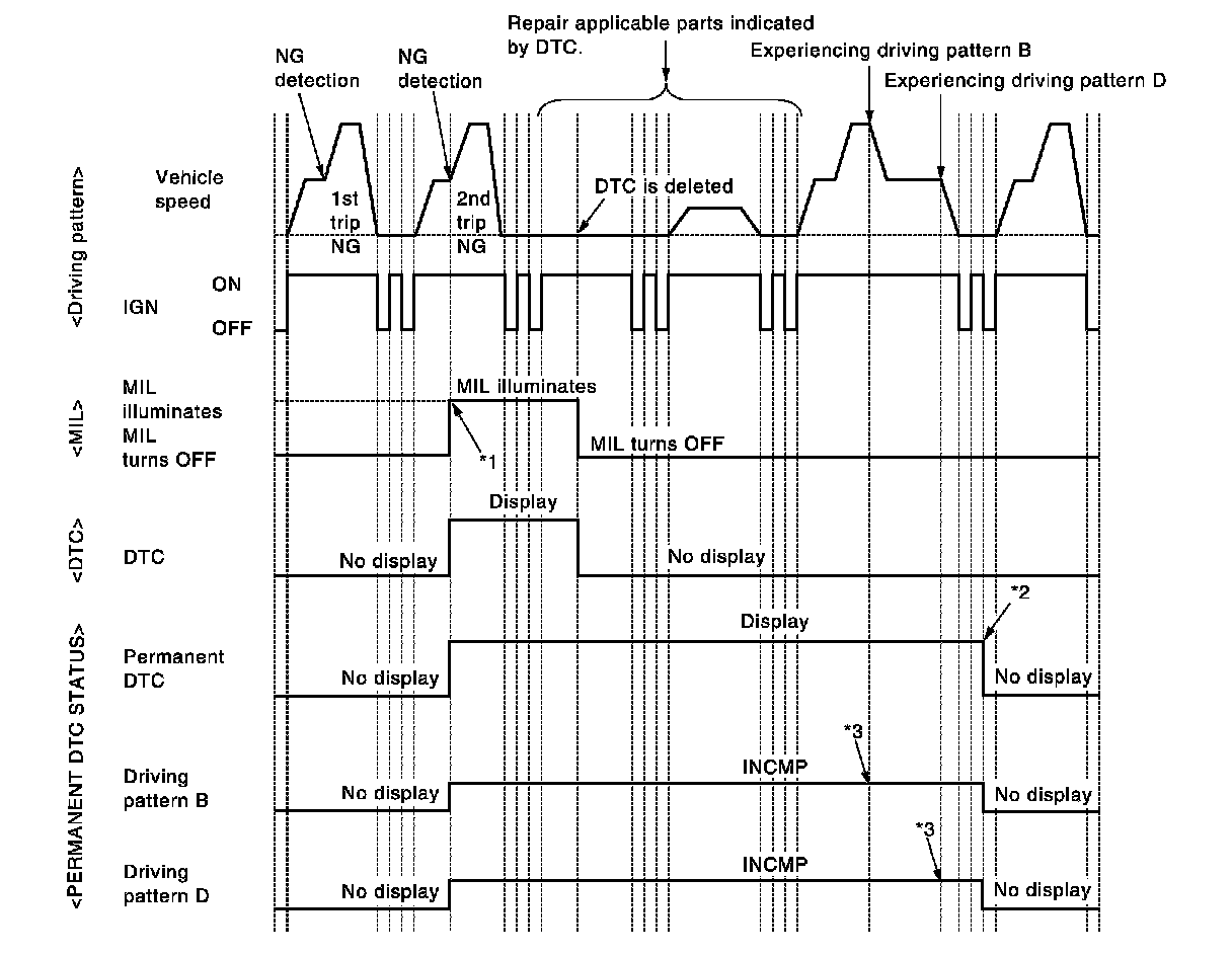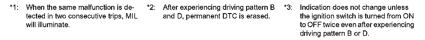 - If self-diagnosis results are erased during the trip of driving pattern B or D, the counter of driving pattern B and D is reset.