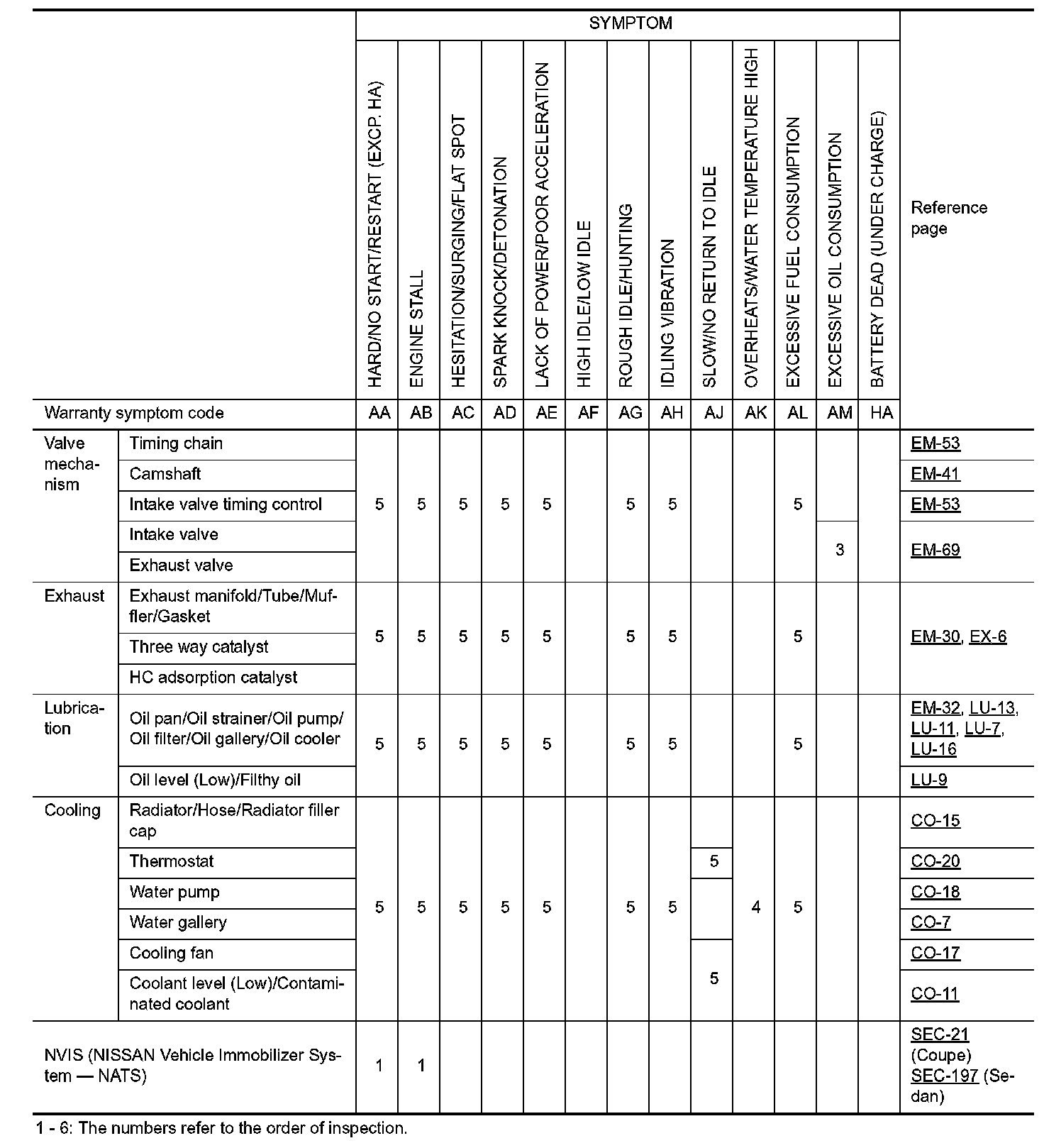 ENGINE CONTROL SYSTEM SYMPTOMS
