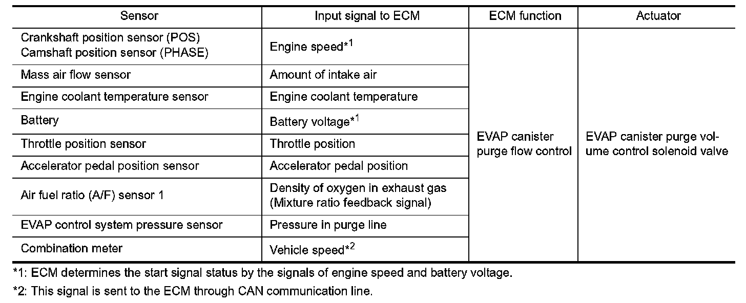 The vapor in the EVAP canister is purged by the air through the purge line to the intake manifold when the engine is operating. EVAP canister purge volume control solenoid valve is controlled by ECM. When the engine operates, the flow rate of vapor controlled by EVAP canister purge volume control solenoid valve is proportionally regulated as the air flow increases.