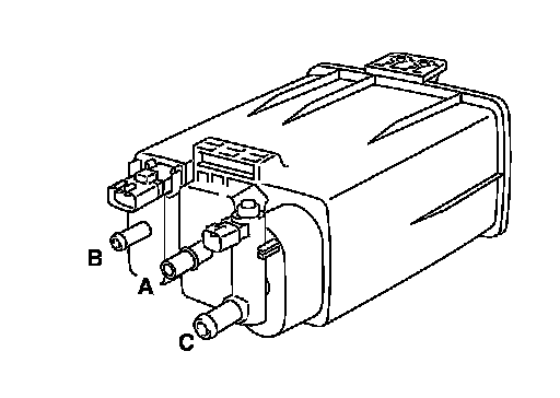 2.Blow air into port (A) and check that it flows freely out of port (C).