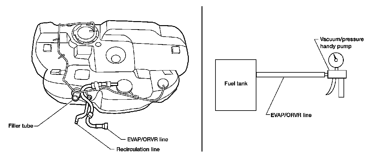 Check hoses and tubes between EVAP canister and refueling control valve for clogging, kink, looseness and improper connection.