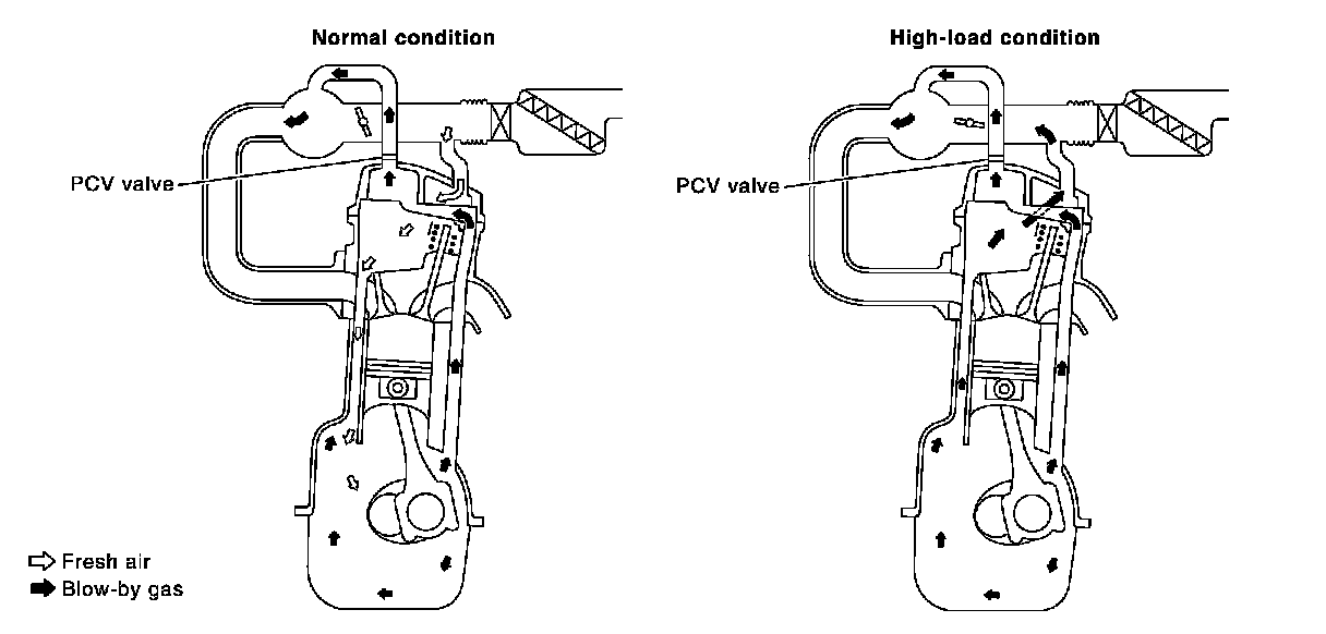 Under full-throttle condition, the manifold vacuum is insufficient to draw the blow-by flow through the valve.