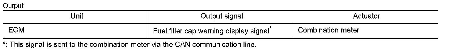 - When the reset operation is performed, the combination meter transmits a fuel filler cap warning reset signal to ECM via CAN communication. ECM transmits a fuel filler cap warning display signal (request for display