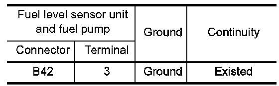 2.Check the continuity between "fuel level sensor unit and fuel pump" and ground.