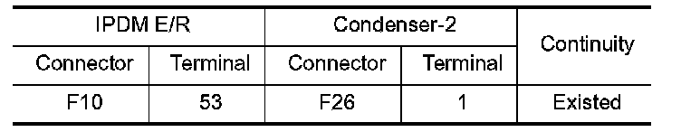 3.Check the continuity between IPDM E/R harness connector and condenser-2 harness connector.