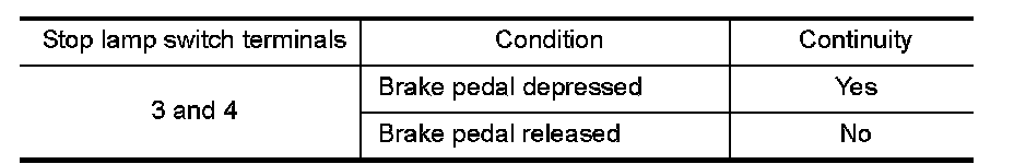 2.Check continuity between stop lamp switch terminals 3 and 4.
