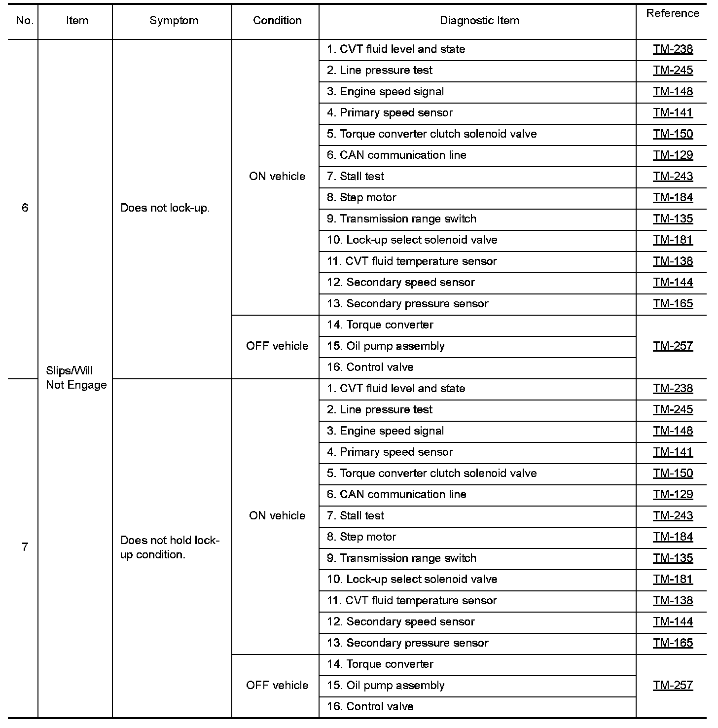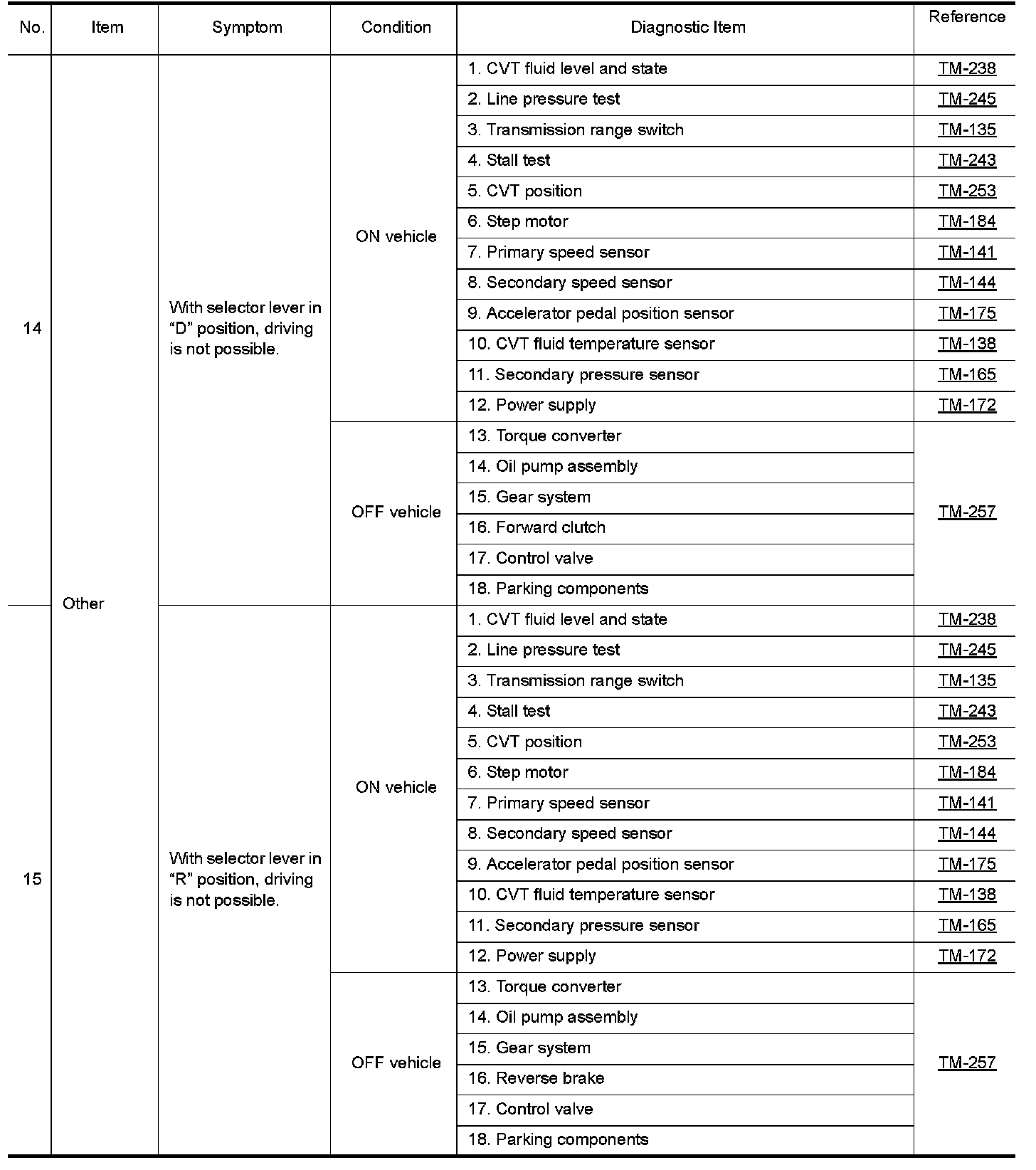 The diagnostics item numbers show the sequence for inspection. Inspect in order from item 1.