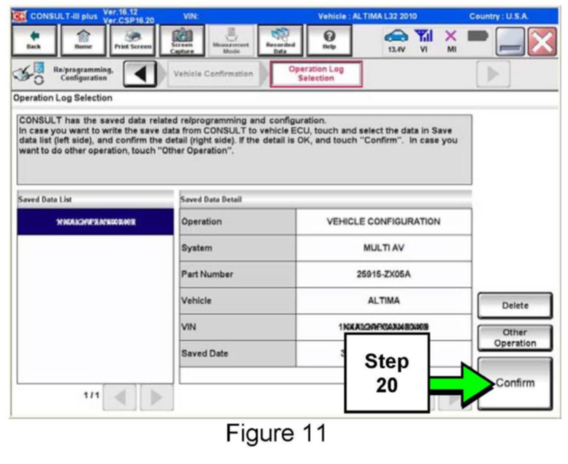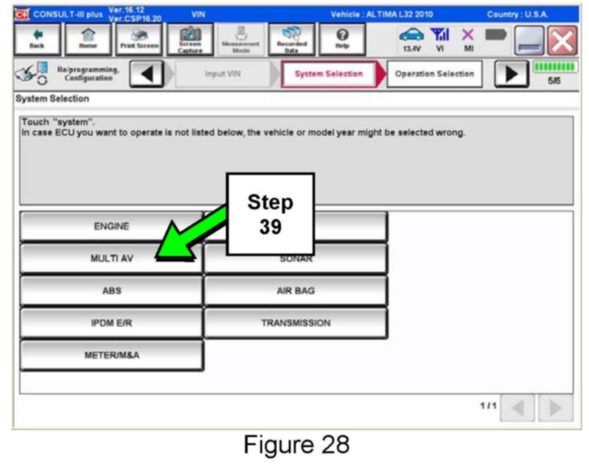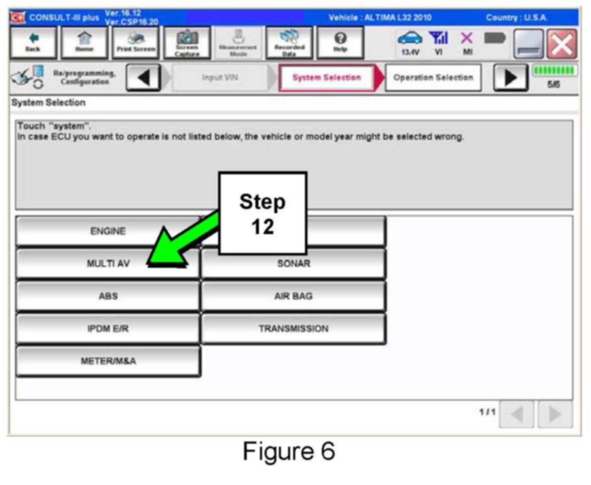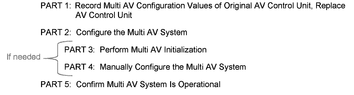 If the configuration data cannot be saved, replace the AV Control Unit as instructed in the applicable Electronic Service Manual (ESM) and then proceed to PART 3: Perform Multi AV Initialization shown below in this bulletin.