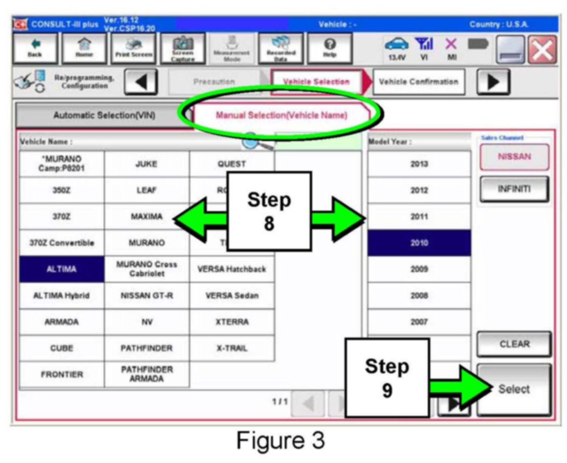 8. Select the Manual Selection (Vehicle Name) tab, then select the applicable Model and Year.