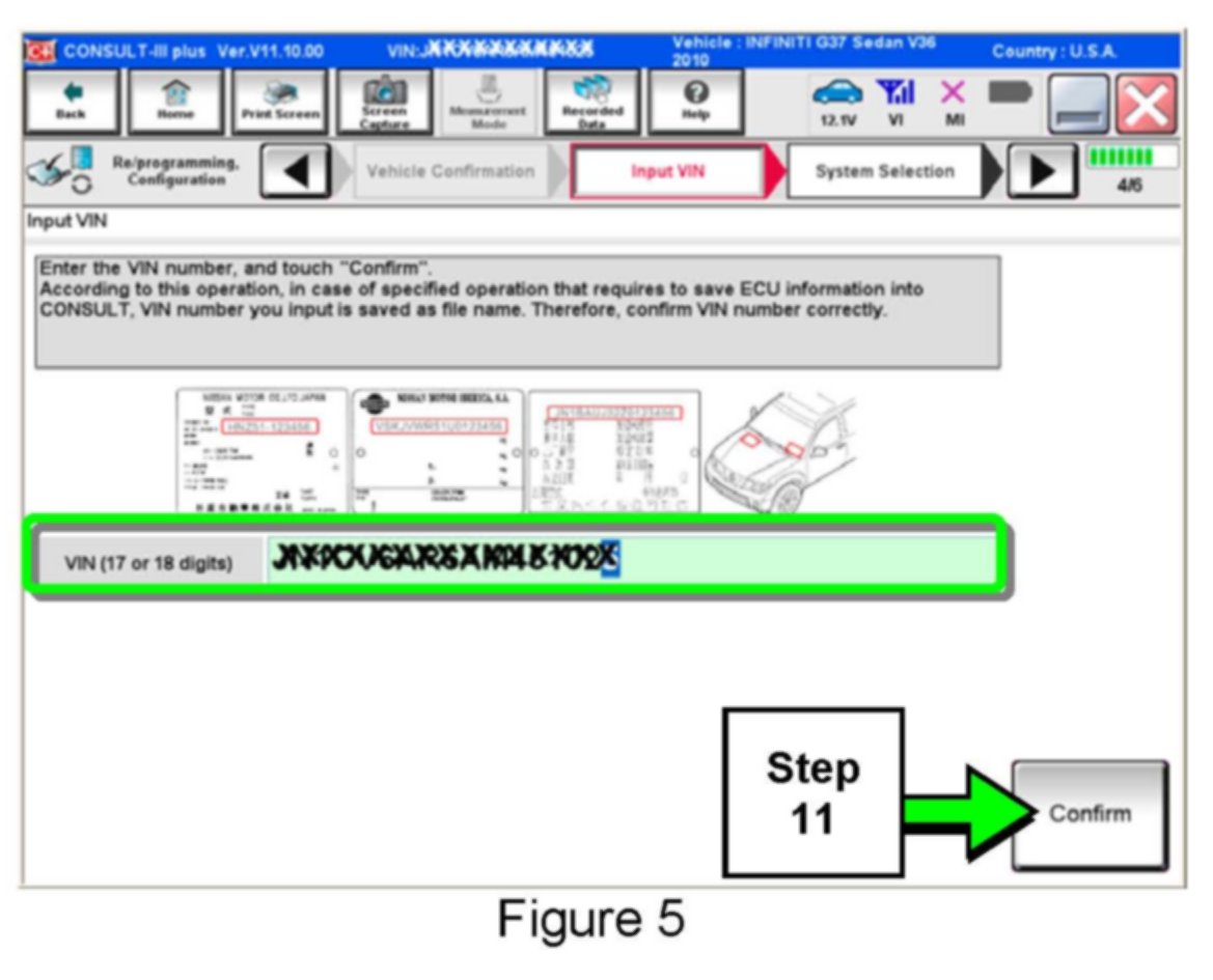 If the VIN displayed is incorrect, input the correct VIN. When finished, select Confirm.