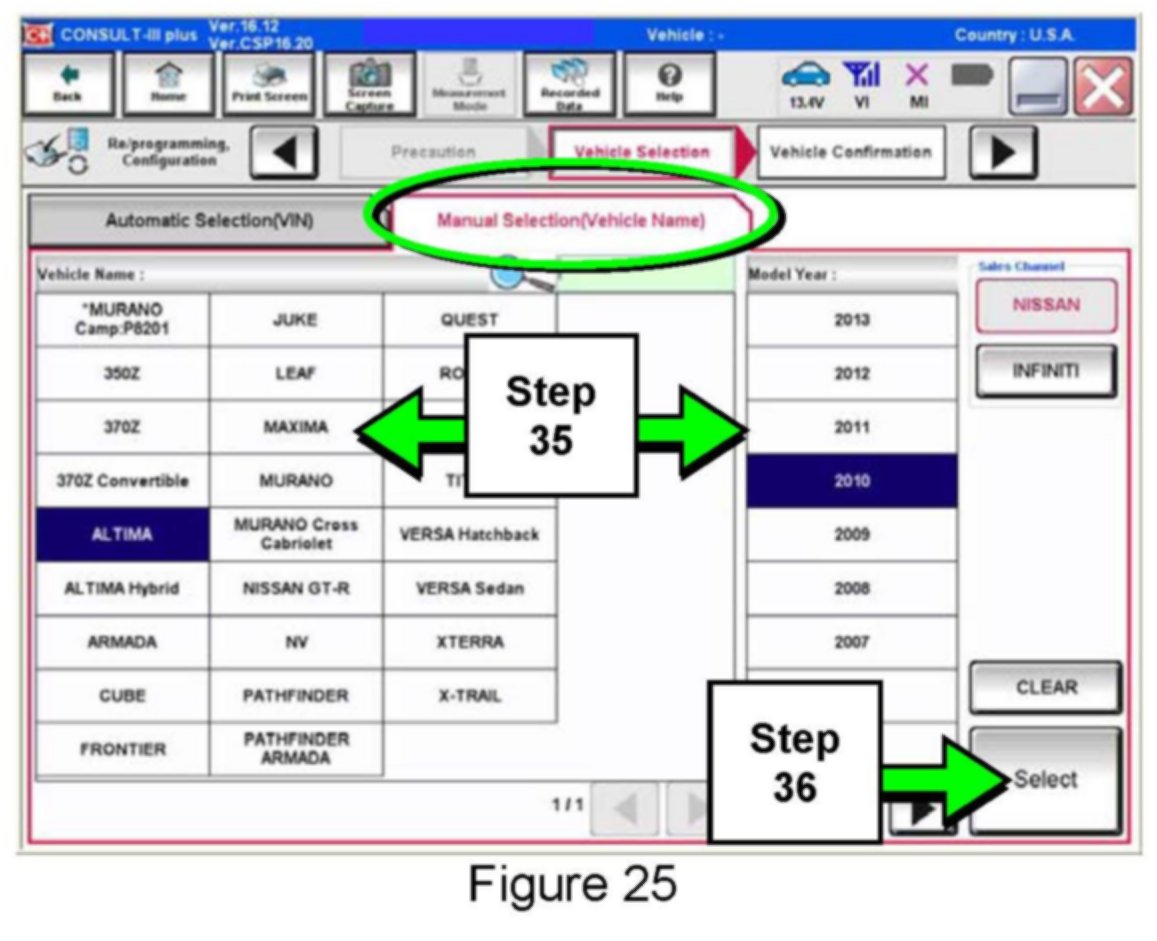 35. Select the Manual Selection (Vehicle Name) tab, then select the applicable Model and Year.