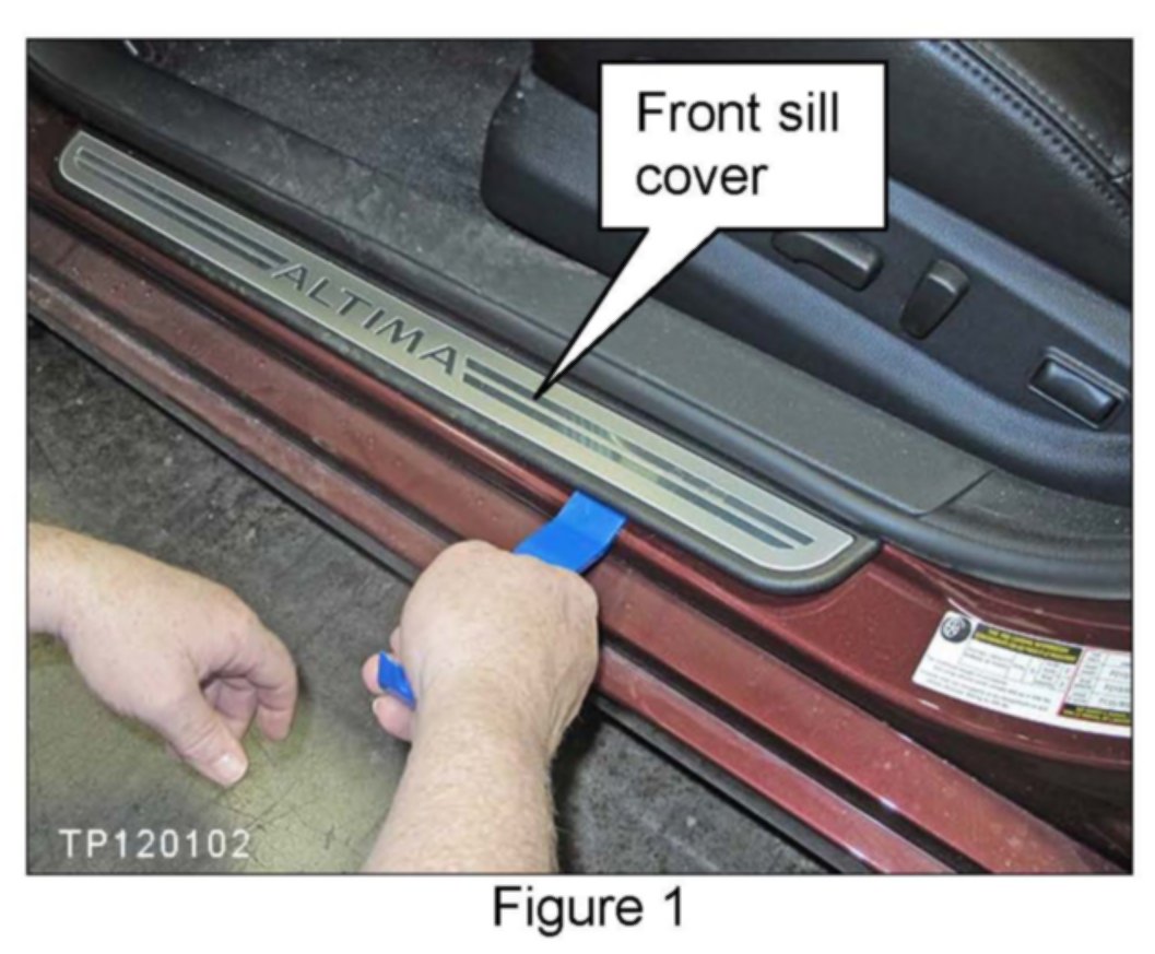 Altima Serial # Check - left side shown, right side is a mirror image1. Use a plastic trim tool to snap loose and remove the front sill cover.