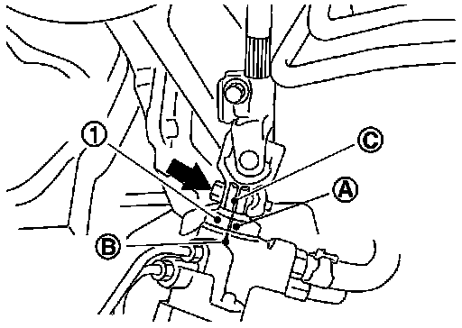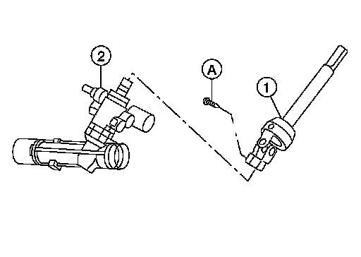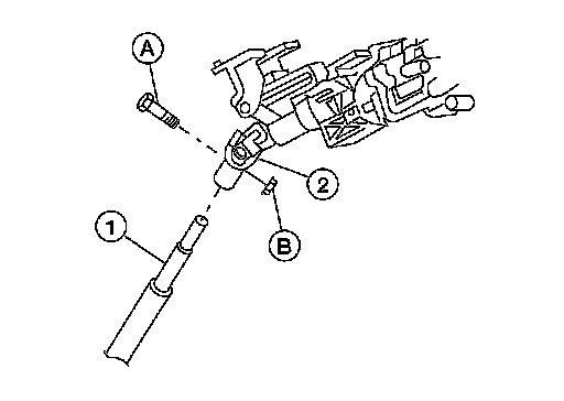 4.Remove bolt (A) and nut (B) of column upper joint (2), then remove lower shaft assembly (1).