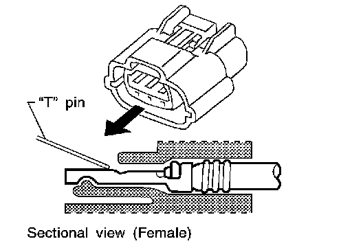 - There is a small notch above each female terminal. Probe each terminal with the "T" pin through the notch.