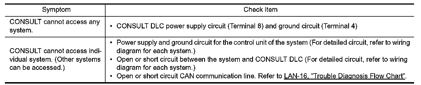 If the CONSULT cannot diagnose the system properly, check the following items.