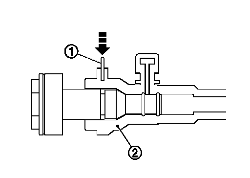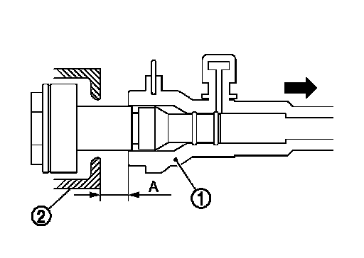 2.Slide the bleeding connector (1) away from the transaxle housing (2) to the specified distance (A) to allow air to bleed from the clutch system.