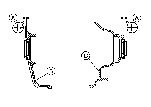 1.Drive the new differential side oil seal into the transaxle case side (B) and converter housing side (C) until it is flush using