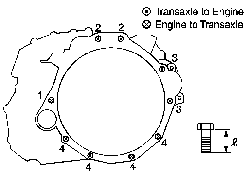 - When installing CVT assembly to the engine assembly, attach the bolts in accordance with the following standard.