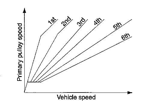 In order to select the gear ratio which can obtain the driving force in accordance with driver's intention and the vehicle condition, TCM monitors the driving conditions, such as the vehicle speed and the throttle position and selects the optimum gear ratio, and determines the gear change steps to the gear ratio. Then send the command to the step motor, and control the flow-in/flow-out of line pressure from the primary pulley to determine the position of the moving-pulley and control the gear ratio.