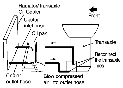 1.Position an oil pan under the transaxle's inlet and outlet cooler hoses.
