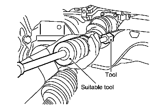 - Set Tool and a drive shaft puller or suitable tool between drive shaft (slide joint side) and transaxle as shown, then remove drive shaft.