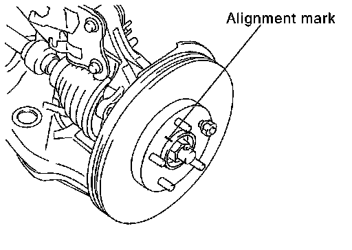 5.Put alignment marks on disc rotor and wheel hub and bearing assembly, then remove disc rotor.