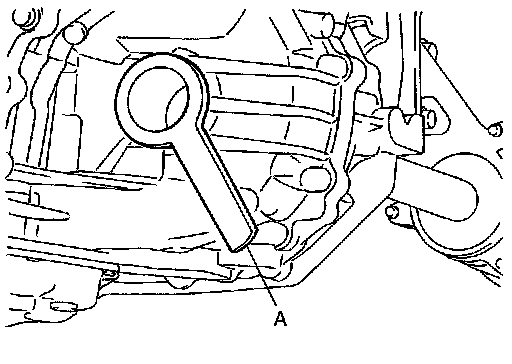 - Use Tool (A) and suitable tool (B) while inserting tip of tool between housing and transaxle assembly.