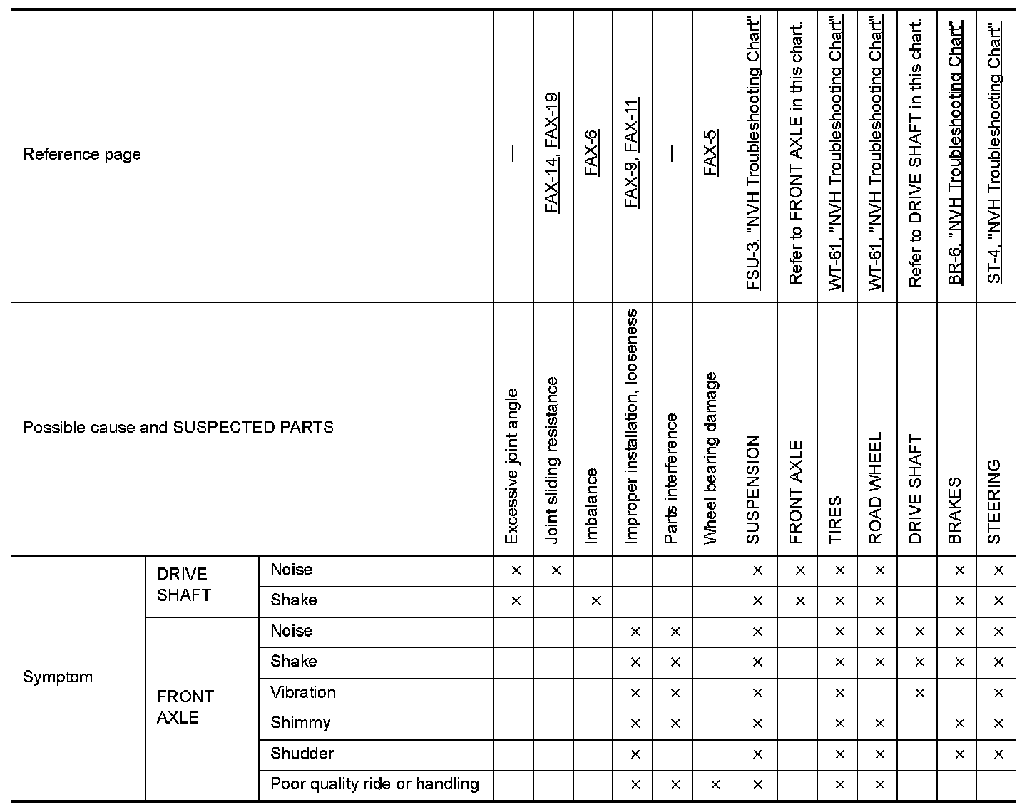 NVH Troubleshooting Chart