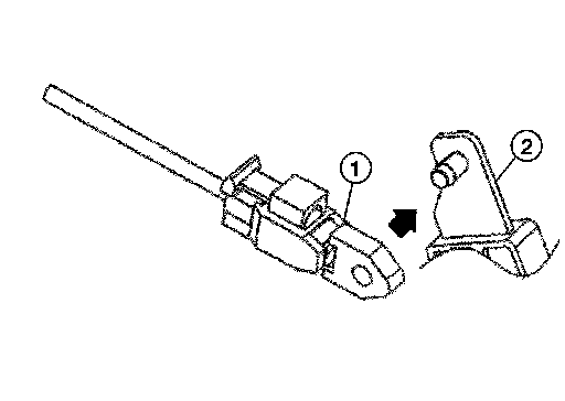 3.Remove the select cable eye end (1) from the select lever (2) of the shift selector assembly.