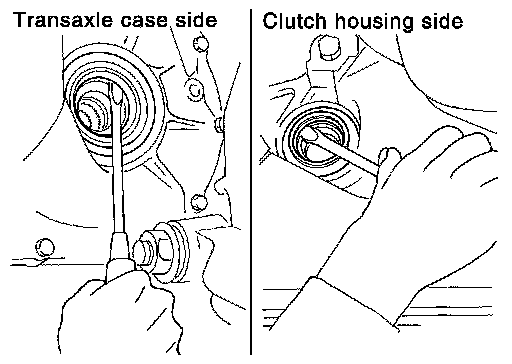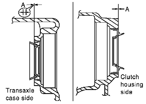 1.Drive the oil seal straight into the transaxle case and clutch housing to the specified dimension (A) using Tools.