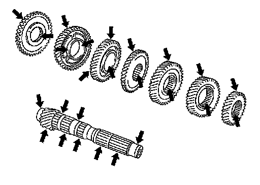 - If any crack, damage, or excessive wear is found on cam face of Baulk ring or working face of insert, replace it.
