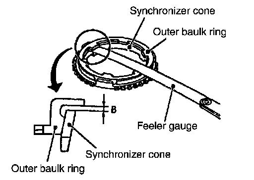 - Check the clearance between outer Baulk ring, synchronizer cone, and inner Baulk ring as follows.