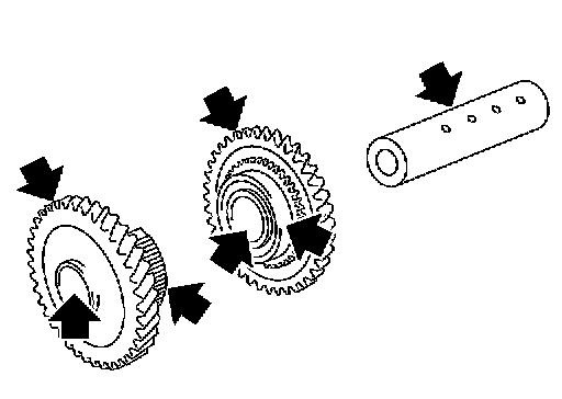 - Coupling sleeve and synchronizer hub of reverse idler gear (Rear) must move smoothly.