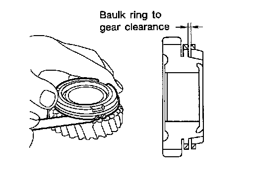 - Push Baulk ring on the cone and measure the clearance between Baulk ring and cone. If the measurement is below limit, replace it with a new one.