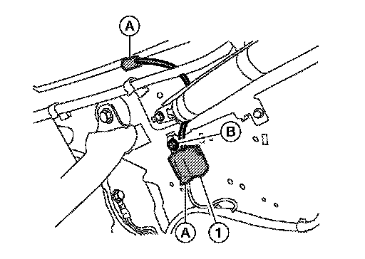 5.Disconnect condenser electrical connectors (A). remove bolt (B), and the condenser (1) from the vehicle body.