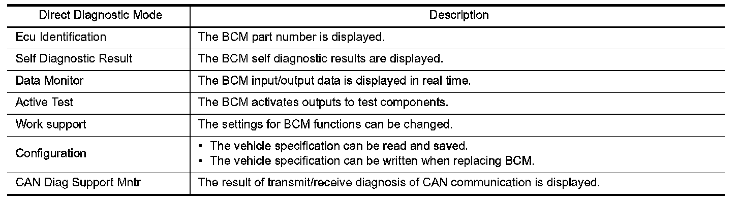 COMMON ITEM : CONSULT Function (BCM - COMMON ITEM)