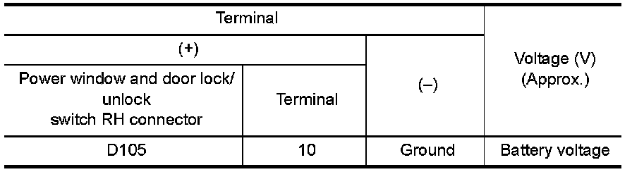 Power Window And Door Lock/unlock Switch RH Power Supply Circuit Check