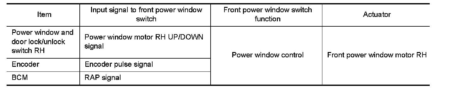 - Encoder continues detecting the movement of power window motor and transmits to power window switch as the encoder pulse signal while power window motor is operating.