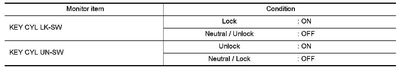 1. CHECK DOOR KEY CYLINDER SWITCH INPUT SIGNAL