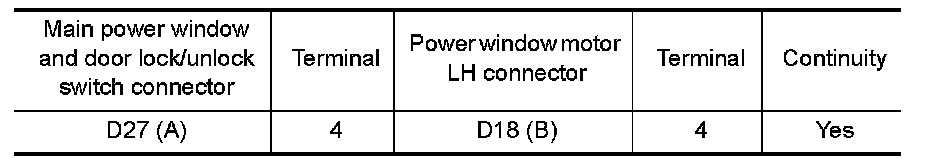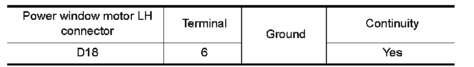 3.Check continuity between power window motor LH connector and ground.