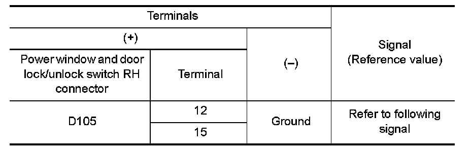 3.Check signal between power window and door lock/unlock switch RH connector and ground with oscilloscope.