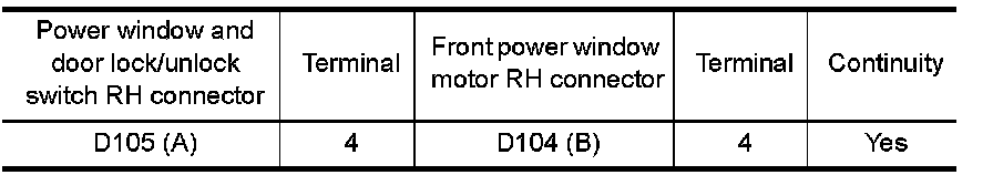 3.Check continuity between front power window motor RH connector and ground.
