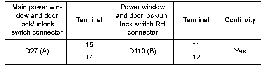 Power Window And Door Lock/Unlock Switch RH Power Supply Circuit Check