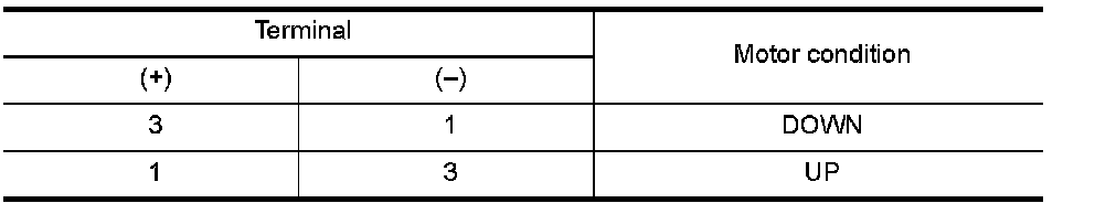 Check motor operation by connecting the battery voltage directly to rear power window motor LH.