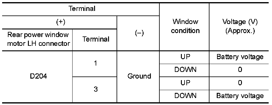 Rear Power Window Motor LH Circuit Check