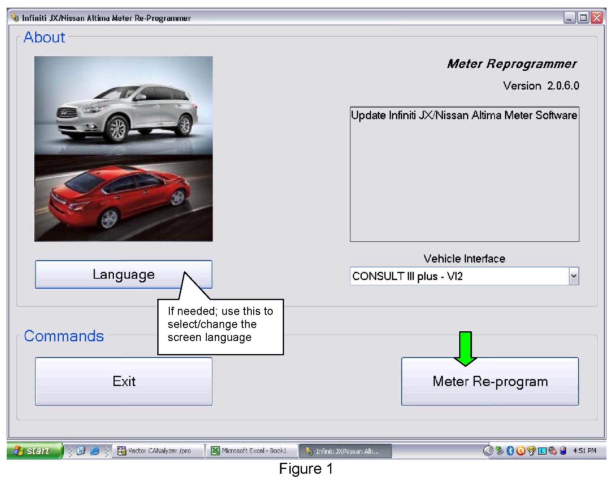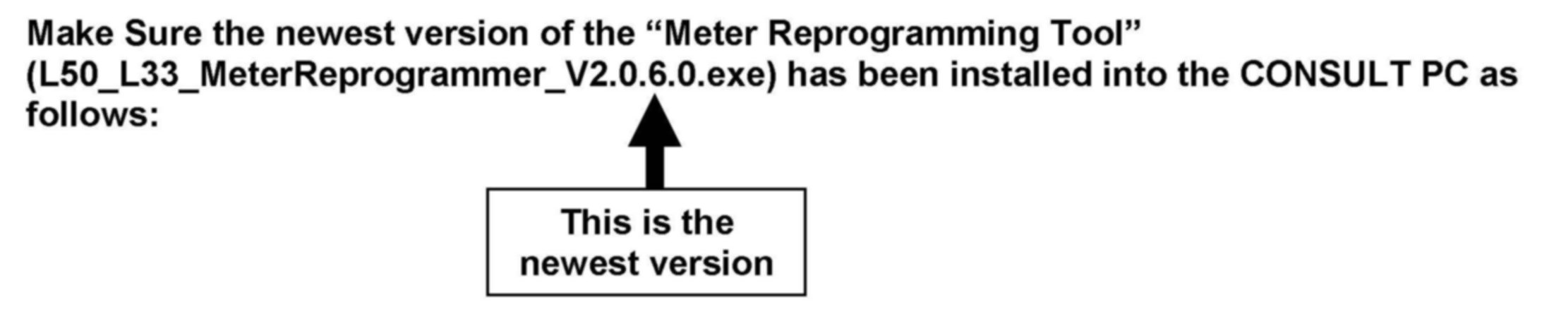 Make Sure the newest version of the "Meter Reprogramming Tool" (L50_L33_MeterReprogrammer_V2.0.6.0.exe) has been installed into the CONSULT PC as shown above.