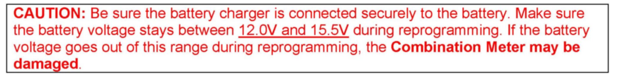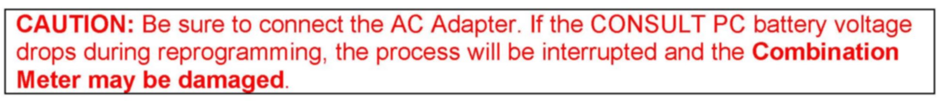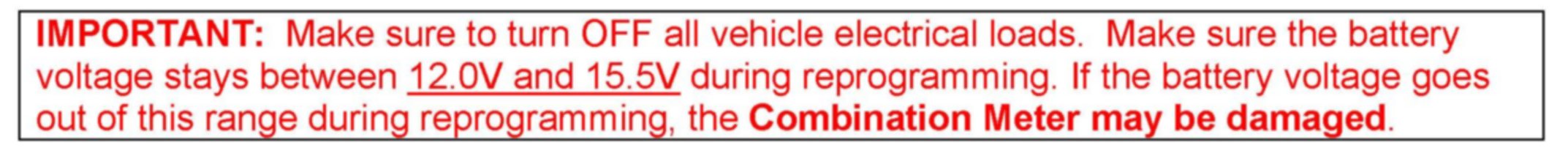 ^ Using the reprogramming tool on another vehicle will erase all data for the current vehicle, and the meter for the current vehicle will not be reprogrammable (recoverable).